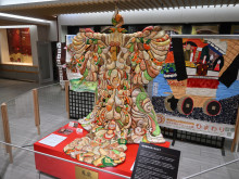 昨年の能登半島地震や奥能登豪雨で被災した人の着物の帯を集めて制作されたオブジェ「鳳龍(ほうりゅう)」の展示が12月25日、金沢駅観光案内所で始まった。