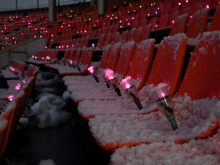 震災で中断している白米千枚田(輪島市)のイルミネーションイベントで使われていたランタン約2万個が2月6日から、金沢市民野球場(金沢市磯部町)の屋外観覧席で夜間点灯している。
