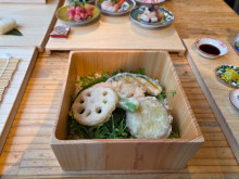 「パスタ編」は、富山短期大学・食物栄養学科の6人が「現代人に不足しがちな栄養素が補給できる商品」をコンセプトにした「大豆と豆乳のWソースパスタ」(450円)、星稜女子短期大学・経営実務科で「地域とビジネス」について学ぶ23人が、能登島のまちおこしのため考えた「ジャガイモ餅の中華風みそパスタ」(450円)に、今年収穫された能登島産のジャガイモをもち状に加工しトッピングした。