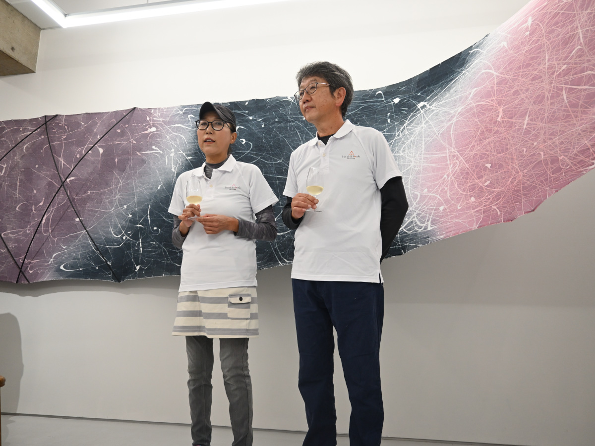 (右から)ワインを紹介する「Vin de la bocchi/ヴァン・ド・ラ・ボッチ」の本多路代さんと雅人さん