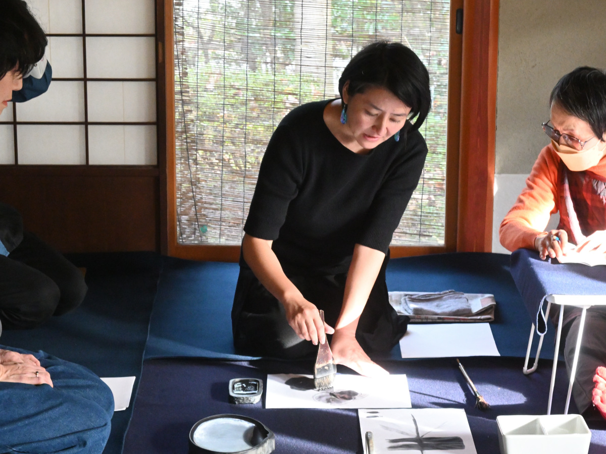 能登で活動する書家、室谷文音さんによる「抒情書(じょじょうしょ)ワークショップ」が11月24日、金沢21世紀美術館(金沢市広坂1)の茶室「松濤(しょうとう)庵」で行われた。
