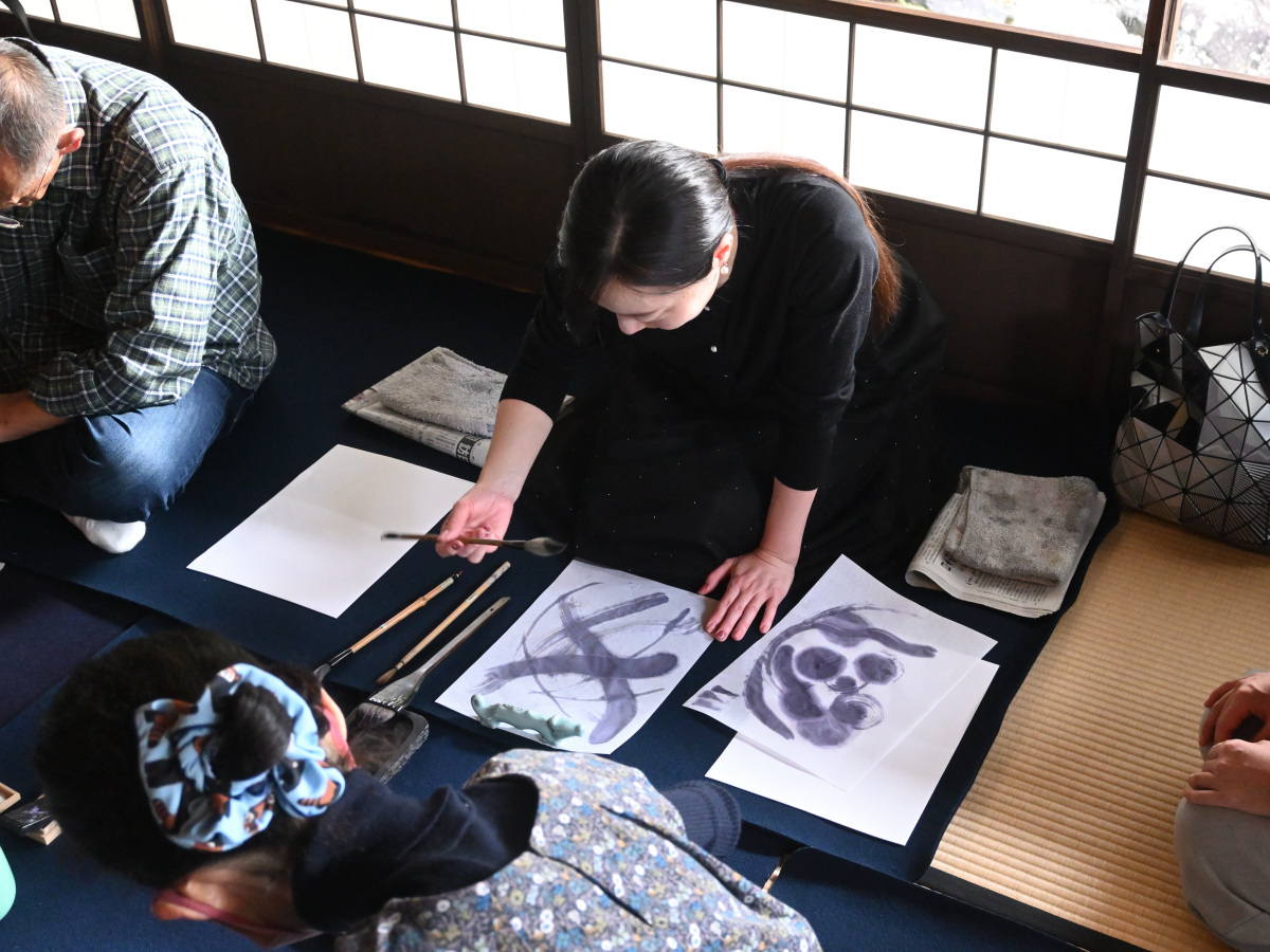 能登で活動する書家、室谷文音さんによる「抒情書(じょじょうしょ)ワークショップ」が11月24日、金沢21世紀美術館(金沢市広坂1)の茶室「松濤(しょうとう)庵」で行われた。