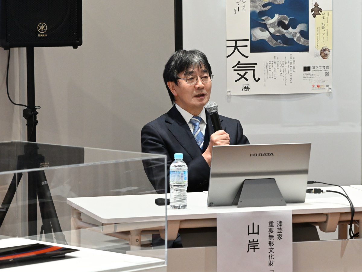 漆芸作家・山岸一男さんと気象予報士・池津勝教さんのトークイベント「輪島の天気・自然と作品制作」が12月20日、国立工芸館(金沢市出羽町)で行われた。