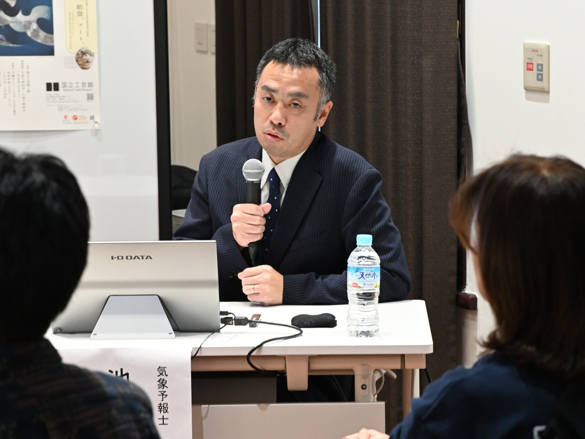 漆芸作家・山岸一男さんと気象予報士・池津勝教さんのトークイベント「輪島の天気・自然と作品制作」が12月20日、国立工芸館(金沢市出羽町)で行われた。