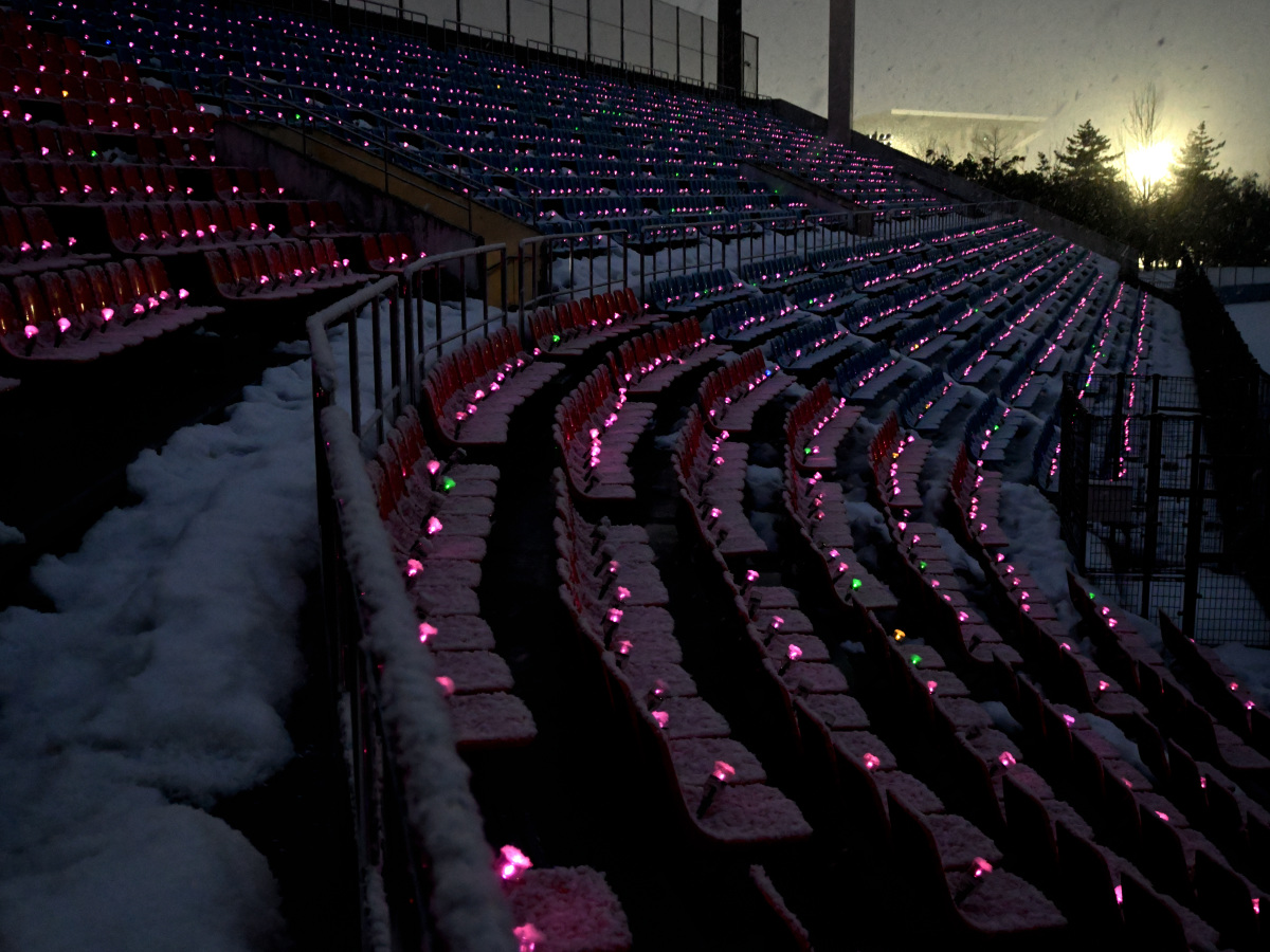 震災で中断している白米千枚田(輪島市)のイルミネーションイベントで使われていたランタン約2万個が2月6日から、金沢市民野球場(金沢市磯部町)の屋外観覧席で夜間点灯している。
