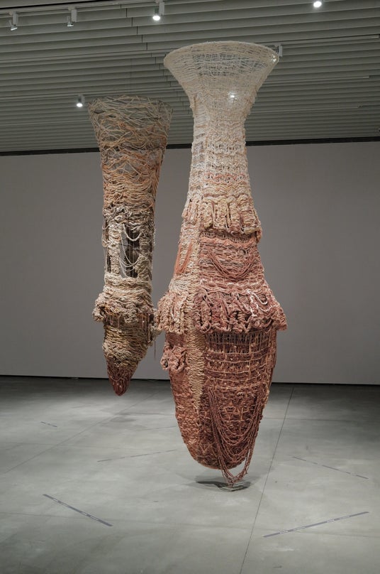 綿結さんは素材の扱いや編み込み方を通して、太古の記憶や人間の普遍的な記憶を表現しています。