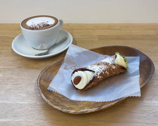 持ち帰りもイートインもできます。イートインの場合、買ったカンノーリと焼き菓子は隣のアンゴロカフェで美味しいドリンクと一緒に食べることも可能です。もちろん、アンゴロカフェのスイーツも絶品なのでより楽しい時間を過ごせます。