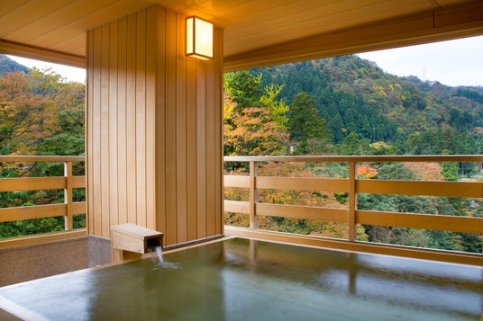 露天風呂や貸切風呂、ロビーラウンジ、客室からは鶴仙渓の新緑、深緑、紅葉、雪景色など、四季折々の情景をご覧いただけます。