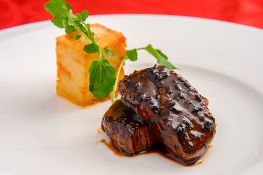 肉料理: 国産牛ヒレ肉のロースト 黒トリュフ入り赤ワインソース