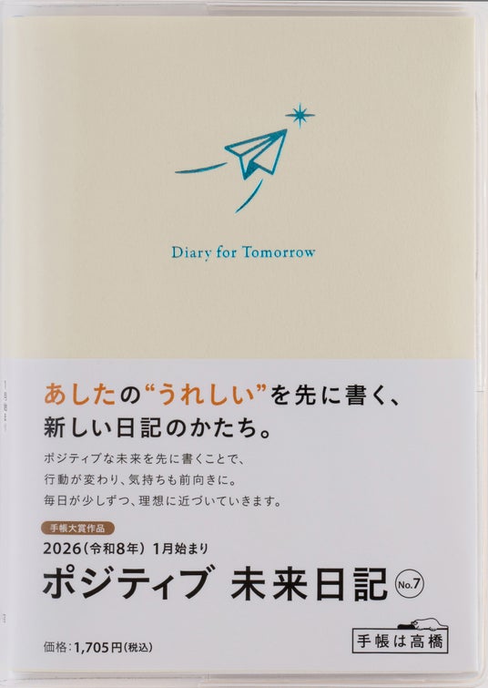 C&Rグループで手帳・日記やカレンダー、書籍の企画・編集・出版等を手掛ける株式会社高橋書店は、『ポジティブ 未来日記(No.7)』の販売を高橋書店公式オンラインショップ、Amazon、ハンズ、ロフトで開始いたしました。『ポジティブ 未来日記』は、第28回手帳大賞(2024年11月に発表)において、アイデア大賞最優秀作品賞を受賞した『ポジティブ未来日記~明日の自分~』(山口翔大さん 13才※応募時 石川県)を実際に商品化したものです。