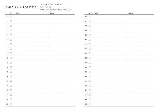 「今年やりたい100のこと」「今年やめたい10のこと」「3年・5年・10年後の自分」「ポジティブワードリスト」をはじめ、「日本地図」「世界地図」「読みたい本リスト」「みたい映画リスト」など、2026年をポジティブに楽しみ、なりたい自分になるための巻末付録を多数収録しています。