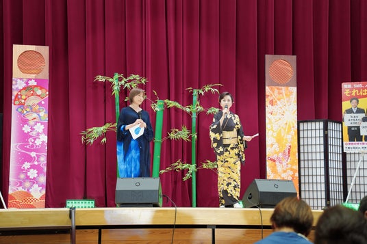 2025年10月13日(月・祝)、石川県の輪島市立輪島中学校で開催された、「能登半島地震被災地復興応援コンサート 第3弾 『響け!!OH!艶歌』百花繚乱夢舞台」に「知って、肝炎プロジェクト」肝炎対策特別大使の伍代夏子氏、およびスペシャルサポーターの高島礼子氏らが出演し、健康と防犯をテーマにした啓発トークを行いました。