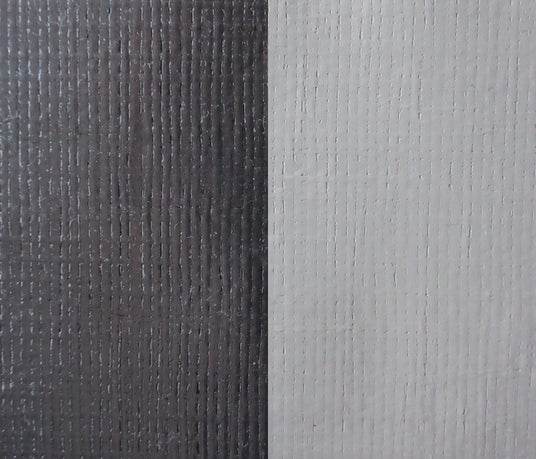 開発したリバーシブルカラー仕様のシート素材(ポリオレフィンクロス) 組成は、経糸:ヴァージンポリエチレン製フラットヤーンを使用、緯糸:再生ポリプロピレン製フラットヤーン(80%:使用済みクリアホルダー由来、20%:工場内廃棄ペットボトルキャップ由来)
