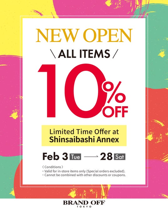 新規オープンを記念して、2/3(月)~2/28(土)の期間中、店頭商品全品10%OFFキャンペーンを実施します。