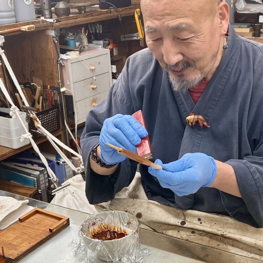 ・輪島塗職人による「拭き漆(ふきうるし)」