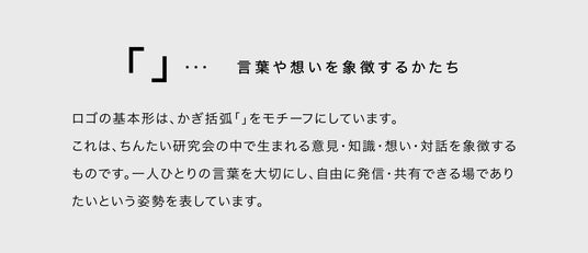 ロゴの基本形は、かぎ括弧「 」をモチーフにしています。これは、ちんたい研究会の中で生まれる意見、知識、想い、対話を象徴するものです。一人ひとりの言葉を大切にし、自由に発信・共有できる場でありたいという姿勢を表現しています。