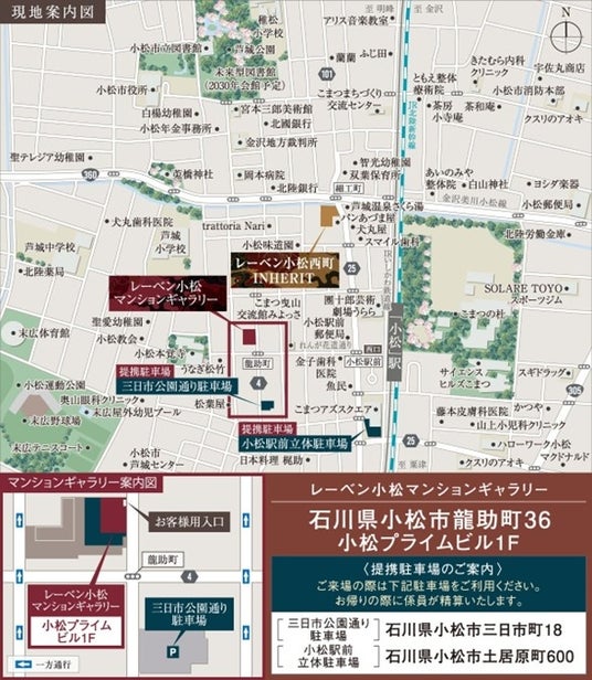 交通 : JR北陸新幹線・IRいしかわ鉄道「小松」駅徒歩6分